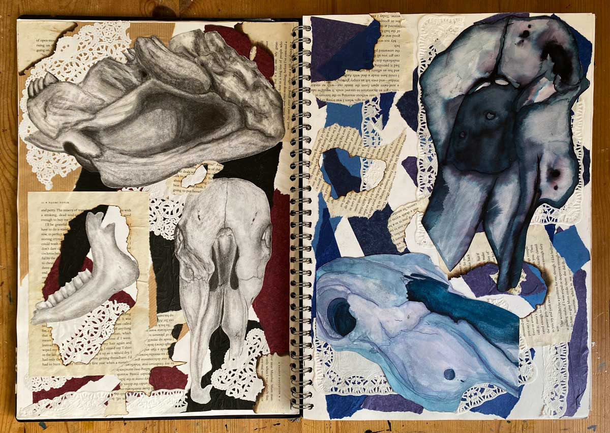 In our first week of A level we were asked to choose one object from the classroom and create multiple still life artworks in a variation of mediums. I chose this large mammals skull, and as an additional drawing, a jaw bone. Creepy I know!